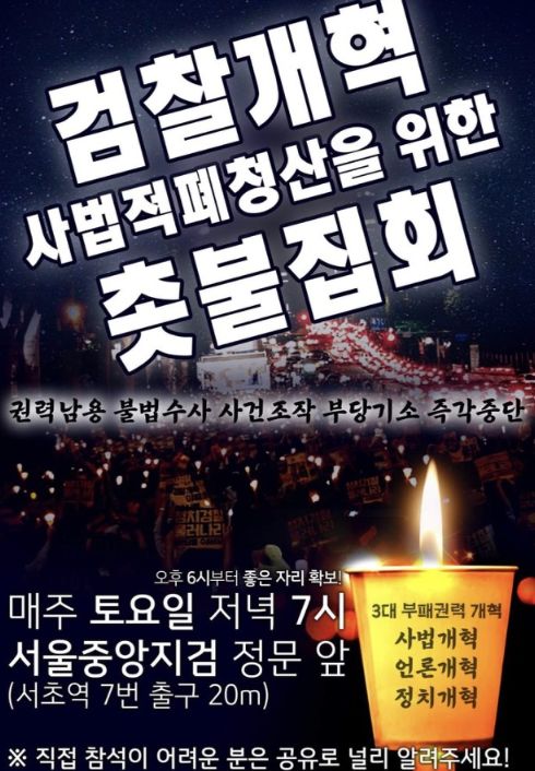 서초동 촛불집회 장소 : 서울중앙지검 앞, 지하철 서초역 7번 출구에서 직진, 서초동 촛불집회 시간 : 저녁 6시부터 진행된다고 합니다.