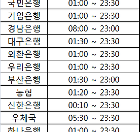 무통장입금 시 가상계좌 입금가능시간이 은행별로 상이하다고 해요. 그래서 오늘은 물품 구매 시 결제 방식을 무통장 입금으로 하였을 때나, 각종 세금, 교통범칙금, 공과금 등 인터넷뱅킹으로 입금 시 가상계좌 입금가능시간에 대해 알아보도록 해요. 저도 얼마전 재산세 입금을 위해 새벽에 인터넷뱅킹으로 농협 가상계좌로 입금 하려는데, 입금시간이 아니라는 문구가 계속 뜨더라구요. 국민은행, 기업은행, 경남은행, 대구은행, 외환은행, 우리은행, 부산은행, 농협, 신한은행, 우체국, 하나은행, 수협까지 가상계좌 입금가능시간 은행별 상이하니, 확인하시고 이용하세요.