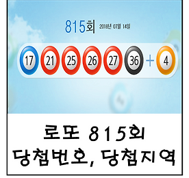 7월14일 토요일 로또 815회 당첨번호, 당첨지역 결과발표 안내입니다. 로또 구매 마감시간 토요일 오후 8시 이며, 당첨번호 결과발표 당첨시간 매주 토요일 저녁 8시 40분 경 SBS 생방송으로 진행됩니다. 815회 로또 1등 당첨번호 17 21 25 26 27 36 으로 당첨자는 총 7명으로 자동 5장, 반자동 2장 이며 당첨금액은 약 25억원 입니다. 2등 당첨자 수 39명 당첨금액 약 7,700만원 정도 입니다. 로또 815회 1등 당첨지역 부산 남구 문현동, 부산 사상구 괘법동, 대구 달서구 본리동, 대구 동구 지저동, 경기 부천시 오정구 원종동, 충남 당진시 수청동, 경남 창원시 성산구 중앙동 까지 1등 당첨지역 입니다. 7월21일 토요일 816회 로또 당첨번호 기대해봅니다.